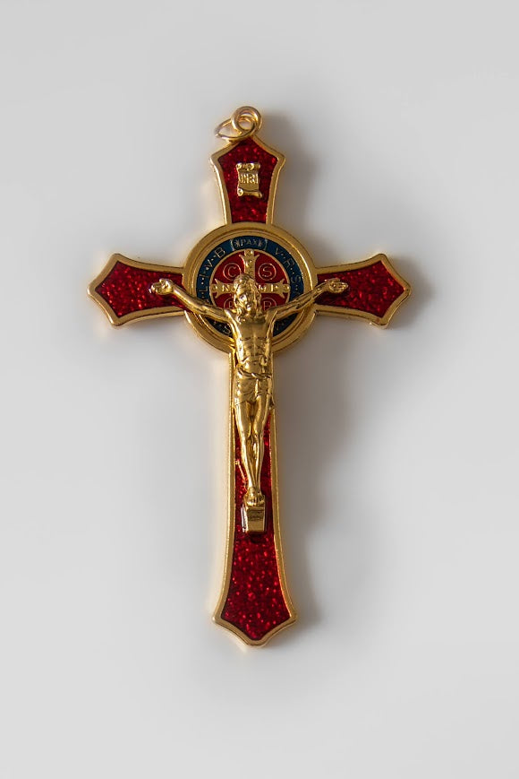 Kryžius pakabinamas Benedikto (metalinis, juodas, raudonas)