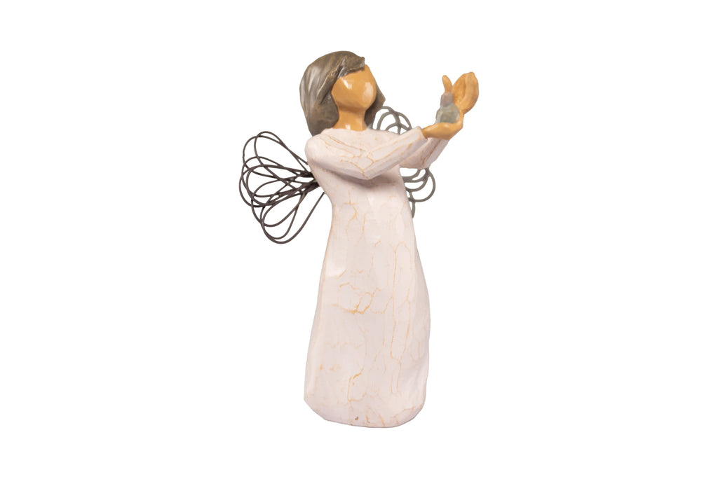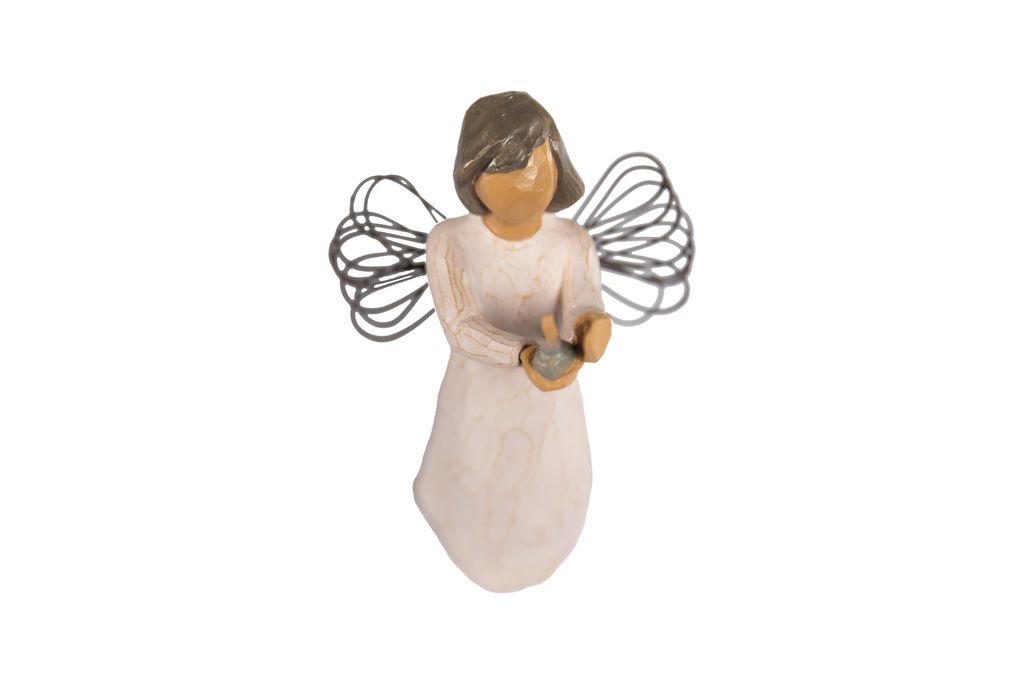 Angelas švelniai laiko žvakę – šviesos ir maldos simbolį, primenantį ramybę, tikėjimą ir vidinę tylą. Tai ne tik dekoracija, bet ir prasmingas akcentas namams, maldos kampeliui ar dovanai ypatingomis progomis.