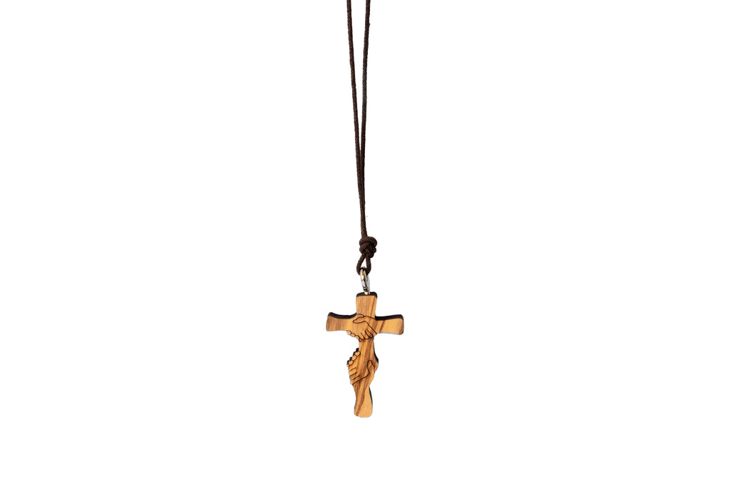 Šis subtilus 34 mm dydžio medinis kryželis, išskirtinai papuoštas rankų simboliu, perteikia vienybę, brolystę ir tikėjimo bendrystę. Kryžius pagamintas iš natūralaus alyvmedžio, kuris simbolizuoja taiką, tvirtumą ir dvasinę stiprybę.