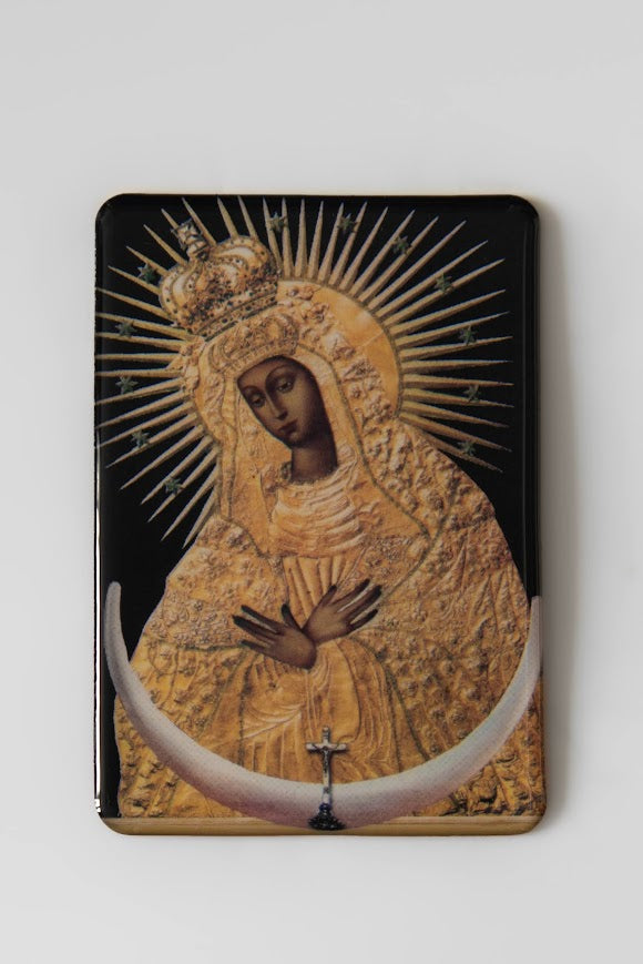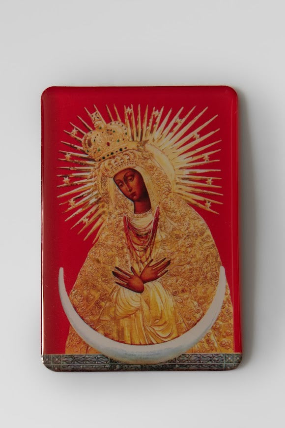 Kiekviename magnetuke pavaizduota Gailestingumo Motina, lydima auksinių spindulių ir mėnulio pjautuvo – tradicinio šio atvaizdo simbolio.